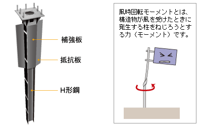 抵抗板は、風時回転モーメントを考慮して、深度方向に設けています。なお、抵抗板は基本的に埋設管等を考慮して道路進行(平行)方向へ取り付けます。